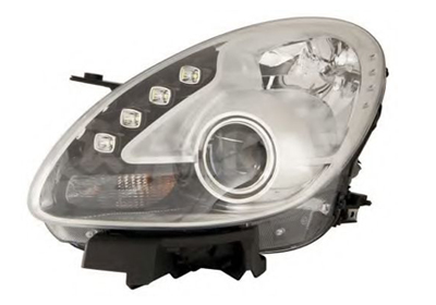 koplamp links met pinklicht